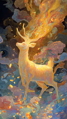 Prompt: The Risograph print depicts a cute pink and blue stag standing on the ground with its head raised, using a striking illustration style